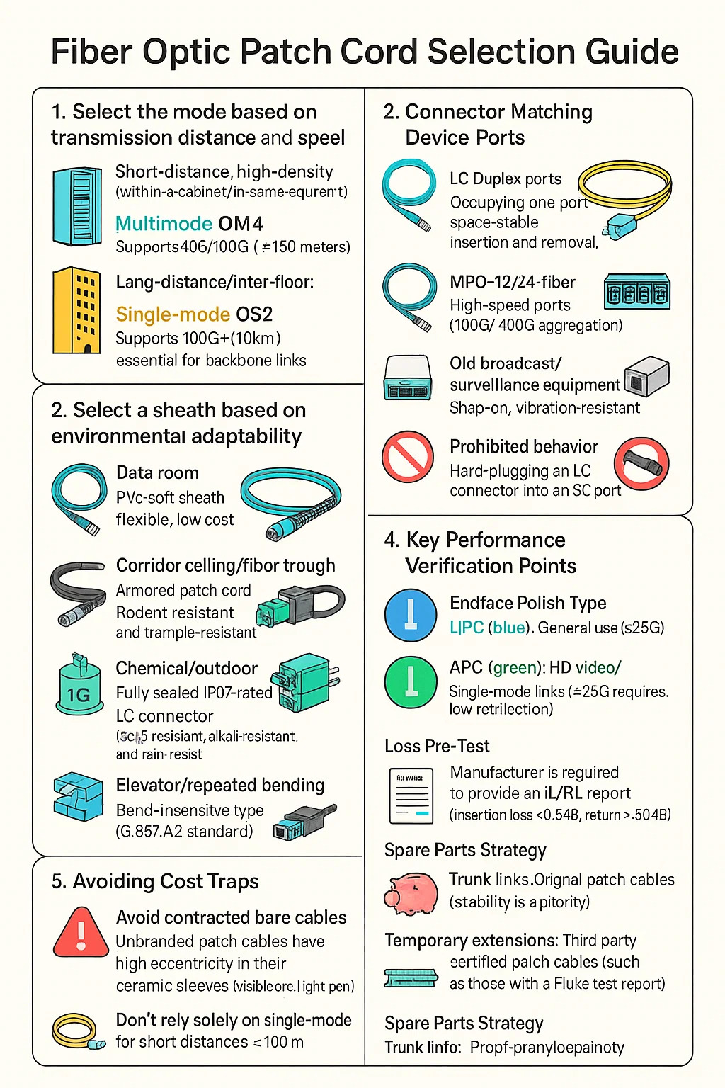Jangan hanya mengandalkan mode tunggal untuk jarak pendek: Untuk jarak ≤100 meter, kabel mode tunggal memerlukan modul optik dengan harga lebih tinggi (kabel multimode menghemat 60% biaya).