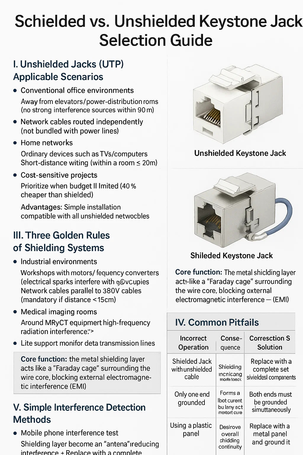 Kabel jaringan Konektor Keystone Jack RJ45 semuanya harus terlindung (kegagalan salah satu komponen menyebabkan sistem tidak efektif)