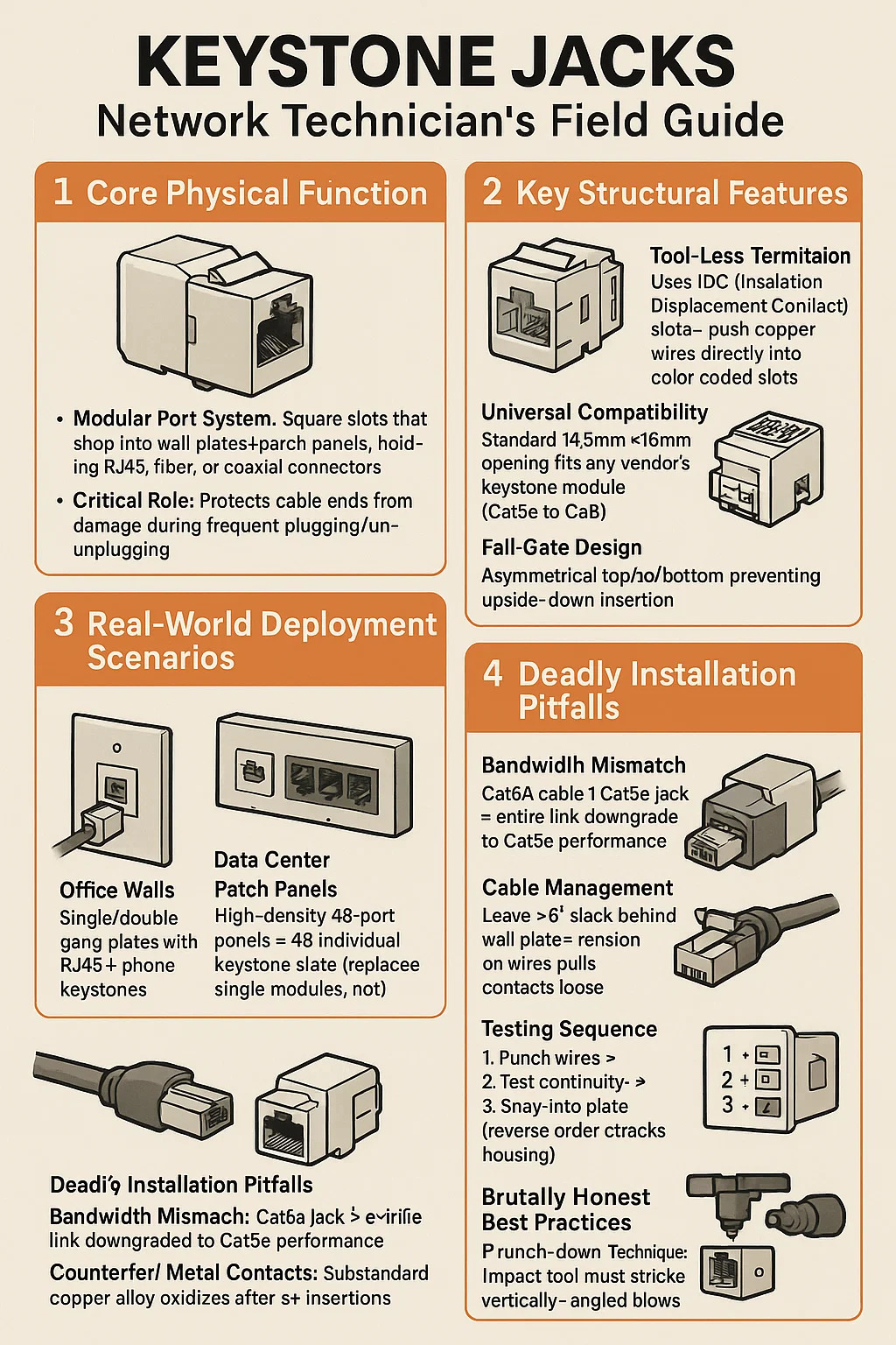 Lingkungan Hibrid: Panel ruang kontrol memadukan keystone HDMI serat RJ45 LC (misalnya, stasiun pemantauan CCTV).